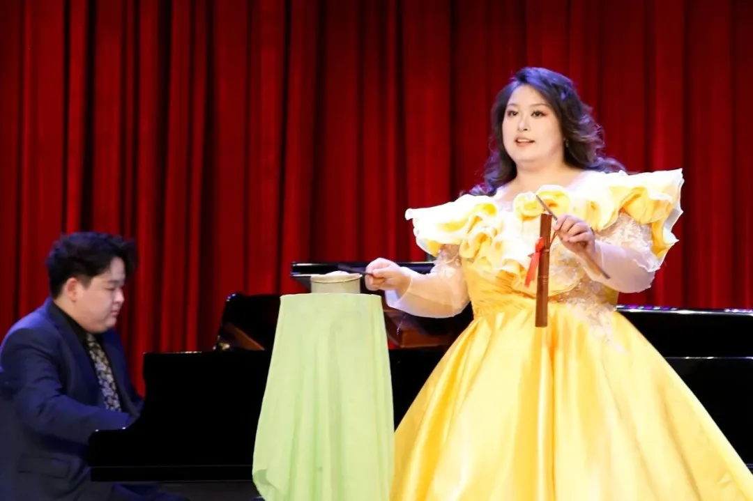 张冰洁是2025届硕士毕业生,本硕就读于首都师范大学初等教育学院,曾获评“北京市优秀毕业生”、学院“优秀共产党员”称号等。研究生阶段其音乐造诣得到于妲妮、许锐等老师的悉心指导。独唱音乐会精选14首曲目,涵盖歌剧选段、民间小调、古诗词艺术歌曲三大类型。从歌曲细节的雕琢到情感表达的把控,张冰洁刻苦练习、反复打磨,经历了十余次现场彩排。音乐会曲目篇幅长、题材跨度大,展现出张冰洁的扎实功底。学院学生韩雪婷、王金帅担任钢琴伴奏,韩丰聿担任主持。