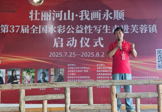 陕西当代水彩粉画研究院理事长张树渊带队赴湖南永顺写生研学,永顺县委宣传部、文旅局、文联、美协、美术馆等当地政府有关领导,以及特邀导师蒋烨、单虹、李虹、黄幸梅、吴昌文、樊军让、彭鹤年和参加写生研学的各地艺术家共同见证了写生活动的启动,永顺县委宣传部副部长鲁尔亚同志宣布写生活动正式启动。