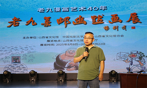 今年是著名漫画家、中国戏曲学院舞台美术系教授老九先生漫画艺术40周年,他的漫画全国巡展第三站来到了山西太原。8月8日,老九集邮幽默画展在山西省文化馆开幕,漫画展至8月22日结束。山西省文化馆馆长黎凤来表示此次老九集邮幽默画展的举办和老九教授的讲座将丰富山西省开展的全民美育文化活动。