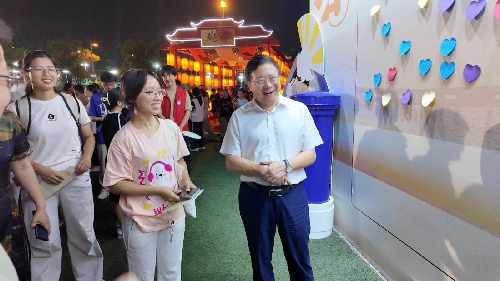 活动现场,罗嗣海一行与大家亲切交流,席地而坐观看现场表演,细致询问同学们国庆假期安排,关心大家在校的学习生活感受,认真倾听同学们分享的校园点滴故事。罗嗣海鼓励同学们主动参与丰富多彩的校园文化活动,在亲身体验中感受中华优秀传统文化的深厚魅力,在实践锻炼中收获成长,在集体活动中感受温暖,让大学时光充满精彩回忆。